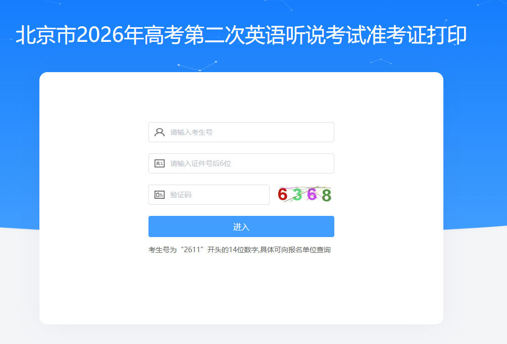 2026年第二次英語聽說考試于2026年3月21日進(jìn)行,2026北京高考第二次英語聽說考準(zhǔn)考證打印時間為2026.3.16-21日,本文整理了準(zhǔn)考證打印入口,方便考生進(jìn)行打印。