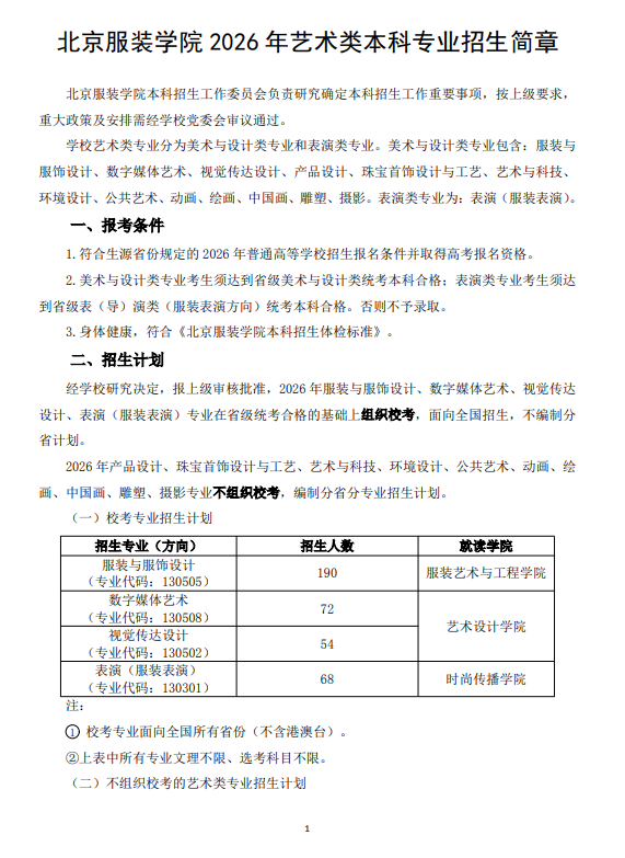 北京服裝學(xué)院2026年藝術(shù)類本科專業(yè)招生簡章