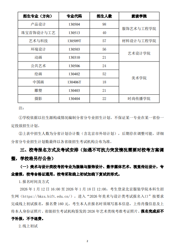 2026招生簡章北服藝術(shù)類本科招生簡章