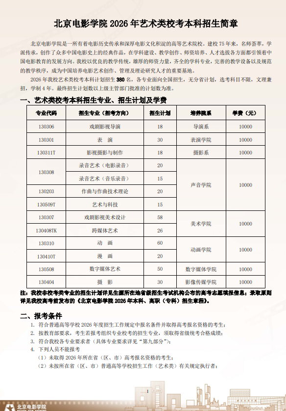 2026招生簡(jiǎn)章北影藝術(shù)類本科招生簡(jiǎn)章