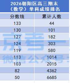 近日,北京市東城、西城、海淀、朝陽等區(qū)的高三年級期末考試成績已陸續(xù)揭曉,備受關(guān)注的 “分?jǐn)?shù)線、區(qū)排名及一分一段表” 也相繼出爐。北京高考在線團(tuán)隊(duì)特意搜集整理了2025-2026學(xué)年北京朝陽區(qū)高三期末數(shù)學(xué)單科成績排名,供考生參考!