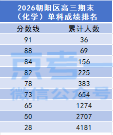 2025-2026學(xué)年北京朝陽(yáng)區(qū)高三期末化學(xué)單科成績(jī)排名