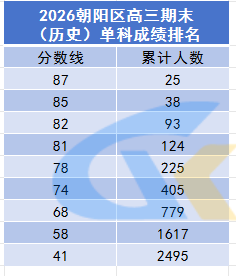 2025-2026學(xué)年北京朝陽區(qū)高三期末歷史單科成績排名
