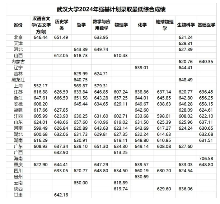 說明:武漢大學(xué)2025年強(qiáng)基入圍分?jǐn)?shù)線未公布,以下為2024強(qiáng)基計(jì)劃入圍線,僅供大家參考。